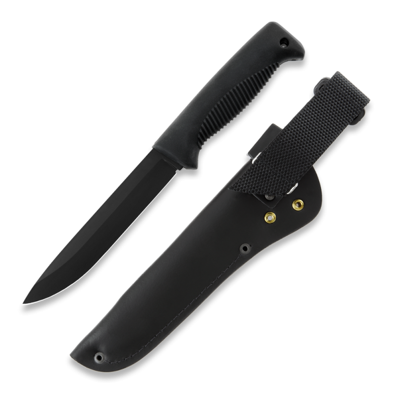 Ausführung: Klinge 15,0 cm PTFE beschichtet (schwarz); Griff schwarz; Scheide Leder schwarz